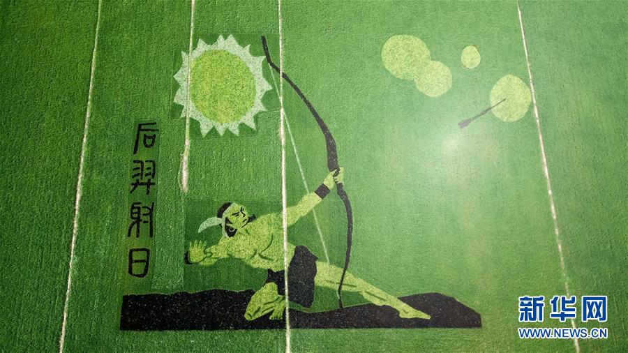 這是7月29日在安徽壽縣安豐塘水庫(kù)北堤拍攝的“稻田畫”(無(wú)人機(jī)拍攝)。 新華社記者 張端 攝