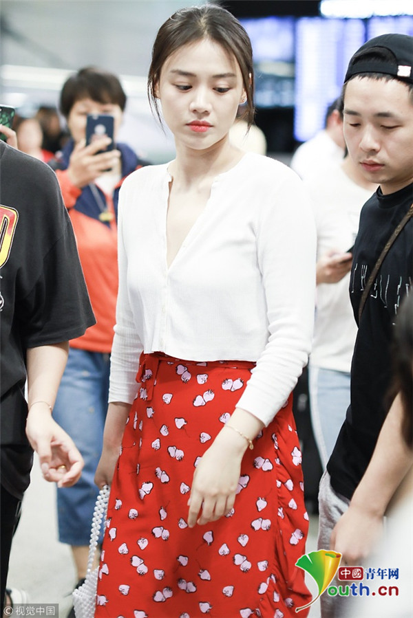 2018年7月31日,“水月”馬思純從北京飛往上?,F(xiàn)身機(jī)場(chǎng),她身穿草莓圖案大紅裙,手提櫻桃小竹籃,造型清新甜美,搭配深V白襯衫,美胸若隱若現(xiàn),平添小性感。