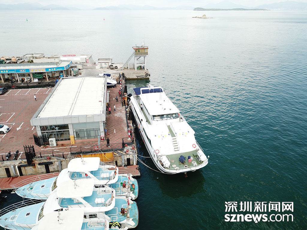 鹽田—南澳航線復(fù)航首日,一艘深圳航運集團客輪停泊在南澳雙擁碼頭,準備出發(fā)前往鹽田