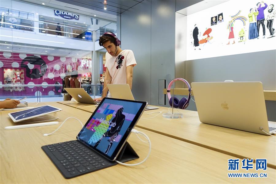 8月2日,顧客在美國(guó)紐約一家蘋(píng)果專賣店選購(gòu)商品。 新華社記者王迎攝