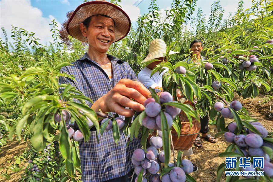 8月12日,平正鄉(xiāng)紅心村的幾名果農(nóng)在采摘李子。