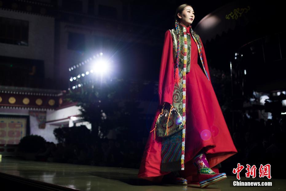 8月12日晚,由西藏職業(yè)技術(shù)學(xué)院與北京服裝學(xué)院共同打造的“凈美雪頓·美好生活”西藏民族服裝與服飾展演活動(dòng)在拉薩舉行。現(xiàn)場(chǎng)通過傳統(tǒng)篇、現(xiàn)代篇與未來篇三個(gè)篇章,展演了藏族傳統(tǒng)服裝26套,設(shè)計(jì)創(chuàng)新服裝58套,共計(jì)84套服裝。圖為模特展示現(xiàn)代設(shè)計(jì)的創(chuàng)新藏族服飾。中新社記者何蓬磊 攝