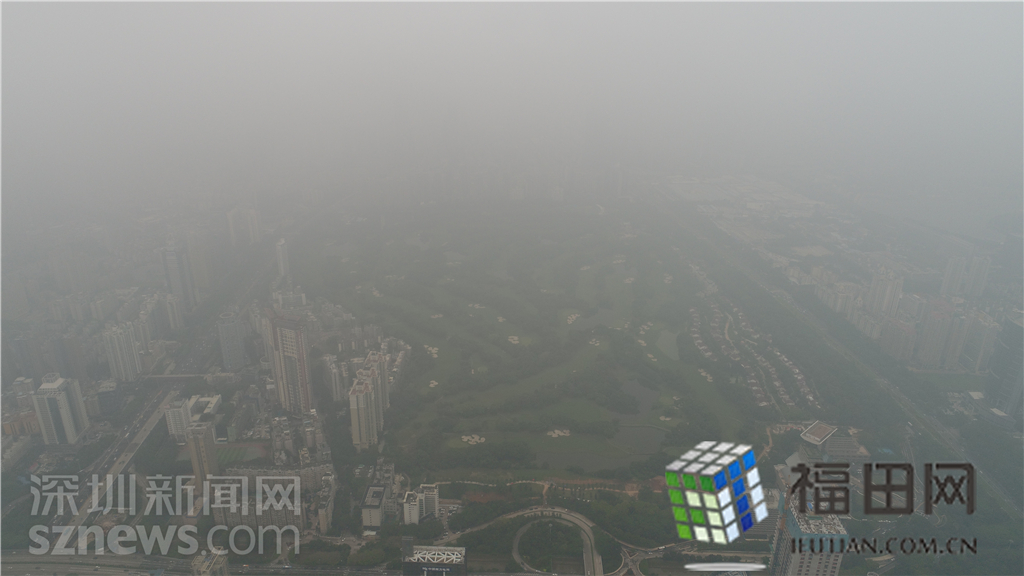 從平安大廈頂樓往下看,深圳高爾夫球場的綠地和湖泊已經分辨不清了,能見度降到1公里。