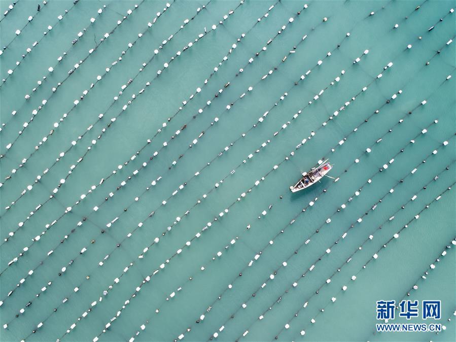 8月19日,空中俯瞰南麂島海域內(nèi)的“海上牧場”養(yǎng)殖區(qū)(無人機拍攝)。進(jìn)入8月,浙江省溫州市平陽縣南麂鎮(zhèn)海域上大片的大黃魚、貽貝等特色海產(chǎn)品養(yǎng)殖區(qū)域迎來豐收季節(jié),養(yǎng)殖戶們駕駛漁船在養(yǎng)殖區(qū)海域進(jìn)行打撈收獲,在碧海藍(lán)天下構(gòu)成了一幅“海上牧場”的美麗豐收景象。近年來,南麂鎮(zhèn)政府引導(dǎo)漁民養(yǎng)殖戶充分發(fā)揮“靠海吃?!钡馁Y源優(yōu)勢,大力發(fā)展海洋養(yǎng)殖經(jīng)濟(jì)和海島旅游經(jīng)濟(jì),實現(xiàn)了南麂由“生態(tài)美”向“產(chǎn)業(yè)美”,“產(chǎn)業(yè)美”向“經(jīng)濟(jì)美”的轉(zhuǎn)變。同時該鎮(zhèn)堅持以大黃魚、貽貝等為特色產(chǎn)業(yè)支撐,精準(zhǔn)發(fā)展高效海洋養(yǎng)殖業(yè),重點培養(yǎng)一批新型職業(yè)漁民,依靠專業(yè)技術(shù)支持,實現(xiàn)深海仿生養(yǎng)殖,讓好生態(tài)造就好品質(zhì),重點打造南麂養(yǎng)殖品牌,組建營銷網(wǎng)絡(luò),拓展特色海產(chǎn)品市場。新華社記者 徐昱攝