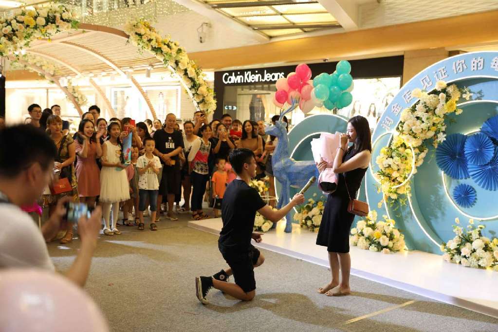開幕式當(dāng)天,潤(rùn)金店工作人員還配合市民楊先生上演了一場(chǎng)浪漫的“求婚大作戰(zhàn)”。原來,數(shù)日前,楊先生到潤(rùn)金店表示要買一枚與眾不同的戒指向女友求婚。在銷售顧問的建議下,楊先生選購(gòu)了一枚藍(lán)寶石戒指作為求婚信物。得知楊先生的心意后,潤(rùn)金店品牌策劃部決定與楊先一起在七夕當(dāng)天完成這場(chǎng)浪漫的“求婚大作戰(zhàn)”。當(dāng)天,楊先生帶著毫不知情的女友來到潤(rùn)金店“炫出色彩 耀你不凡”VIP品鑒會(huì)現(xiàn)場(chǎng)。正當(dāng)女友全神貫注欣賞小提琴、拉丁舞等開幕式表演節(jié)目時(shí),楊先生從兜里掏出事先準(zhǔn)備好的藍(lán)寶石戒指,單膝跪地向一臉茫然的女友喊:“嫁給我吧?!贝藭r(shí),開幕式現(xiàn)場(chǎng)背景音樂“配合”地?fù)Q成了甜蜜的《今天你要嫁給我》。感動(dòng)得熱淚盈眶的女友在圍觀市民的歡呼中,拉起了楊先生,并答應(yīng)了他的求婚。圍觀市民表示“七夕不過是路過,卻不料狠狠地吃了一把狗糧?!?/p>