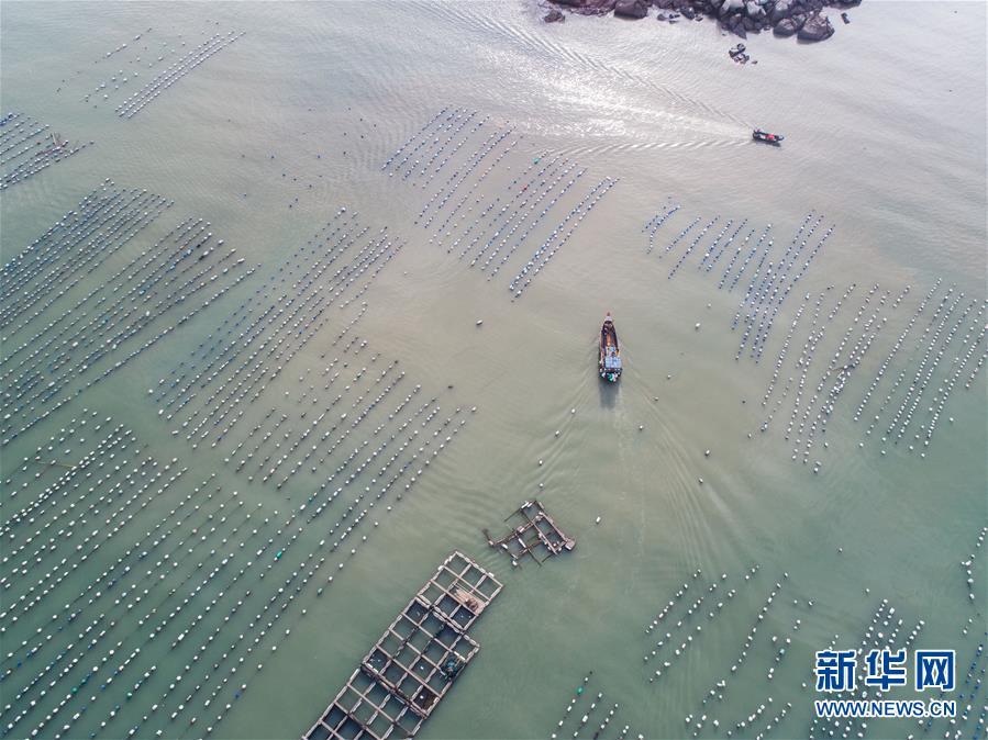 8月19日,空中俯瞰南麂島海域內的“海上牧場”養(yǎng)殖區(qū)(無人機拍攝)。進入8月,浙江省溫州市平陽縣南麂鎮(zhèn)海域上大片的大黃魚、貽貝等特色海產品養(yǎng)殖區(qū)域迎來豐收季節(jié),養(yǎng)殖戶們駕駛漁船在養(yǎng)殖區(qū)海域進行打撈收獲,在碧海藍天下構成了一幅“海上牧場”的美麗豐收景象。近年來,南麂鎮(zhèn)政府引導漁民養(yǎng)殖戶充分發(fā)揮“靠海吃海”的資源優(yōu)勢,大力發(fā)展海洋養(yǎng)殖經濟和海島旅游經濟,實現了南麂由“生態(tài)美”向“產業(yè)美”,“產業(yè)美”向“經濟美”的轉變。同時該鎮(zhèn)堅持以大黃魚、貽貝等為特色產業(yè)支撐,精準發(fā)展高效海洋養(yǎng)殖業(yè),重點培養(yǎng)一批新型職業(yè)漁民,依靠專業(yè)技術支持,實現深海仿生養(yǎng)殖,讓好生態(tài)造就好品質,重點打造南麂養(yǎng)殖品牌,組建營銷網絡,拓展特色海產品市場。新華社記者 徐昱攝