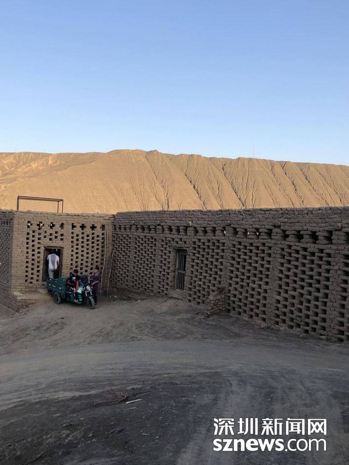 ??? ?在葡萄溝,隨處都可見到土磚砌成的鏤空方格子土屋,構(gòu)成了當(dāng)?shù)匾坏廓毺氐娘L(fēng)景,原來這是專門用來晾葡萄干的場地。 趙春麗攝