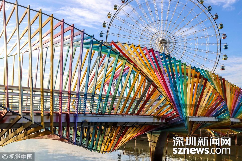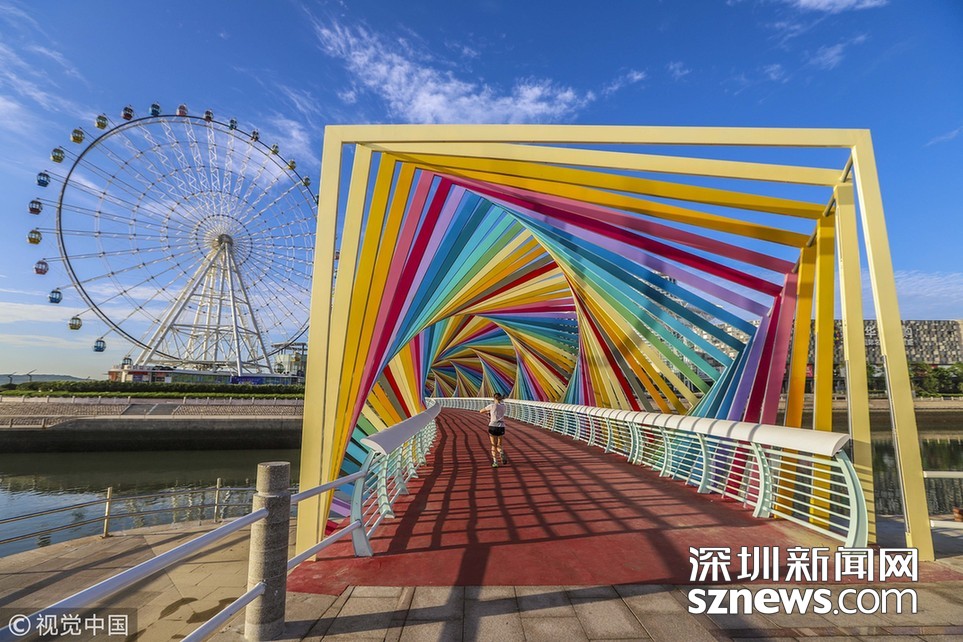 ????深圳新聞網(wǎng)訊? 2018年9月5日,山東青島,西海岸新區(qū)為唐島灣公園量身定制的“七彩橋”驚艷亮相,整個橋身色彩斑斕,造型別致。