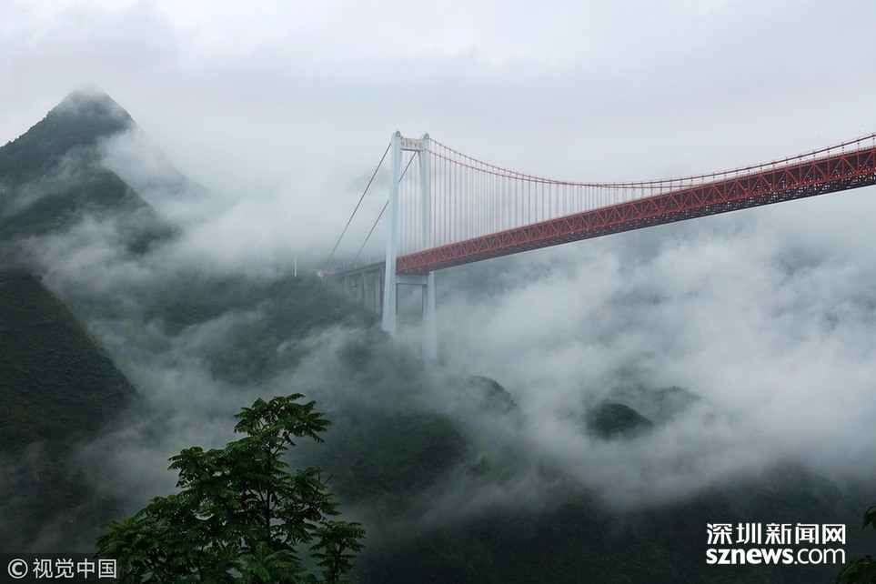 ???深圳新聞網(wǎng)訊 2018年6月26日,一場大雨后貴州省安順市關(guān)嶺縣壩陵河大峽谷云霧繚繞,橫跨兩岸的壩陵河大橋在云霧中時隱時現(xiàn),更顯雄偉壯觀。