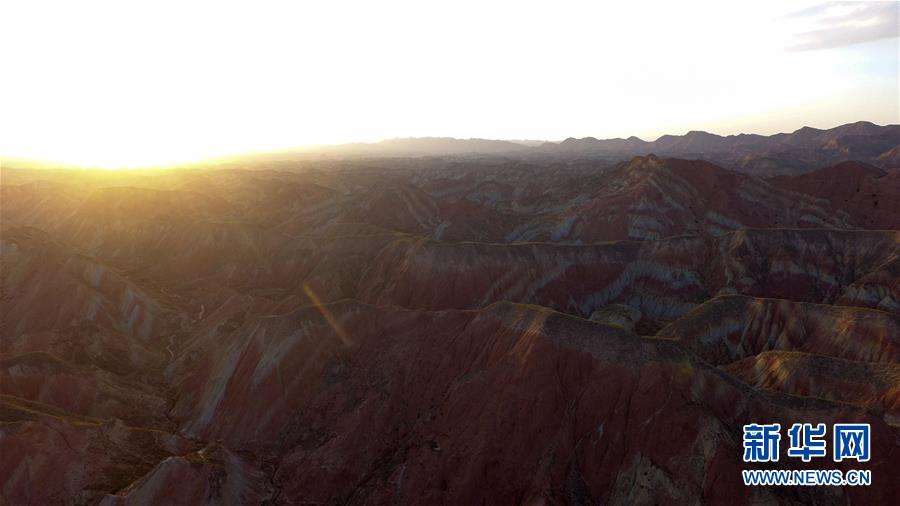 這是9月5日無人機(jī)拍攝的甘肅張掖丹霞地貌。