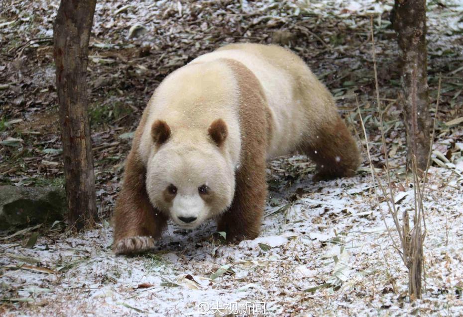 秦嶺大熊貓野化培訓佛坪基地,7歲的棕色大熊貓七仔是目前全世界唯一能看到的棕色大熊貓活體。今年是它在基地過的第二個冬天,每逢下雪,七仔就興奮地滿園子跑,變身“雪花熊”。央視記者李志王志杰 圖片來源:央視新聞官方微博