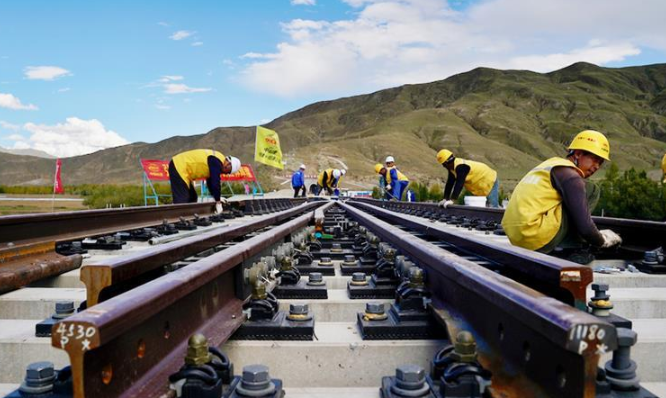 川藏鐵路拉林段首組道岔鋪設(shè)成功