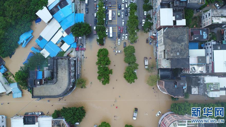 9月18日,陽(yáng)春市勝利街積水嚴(yán)重。 新華社記者 周科 攝