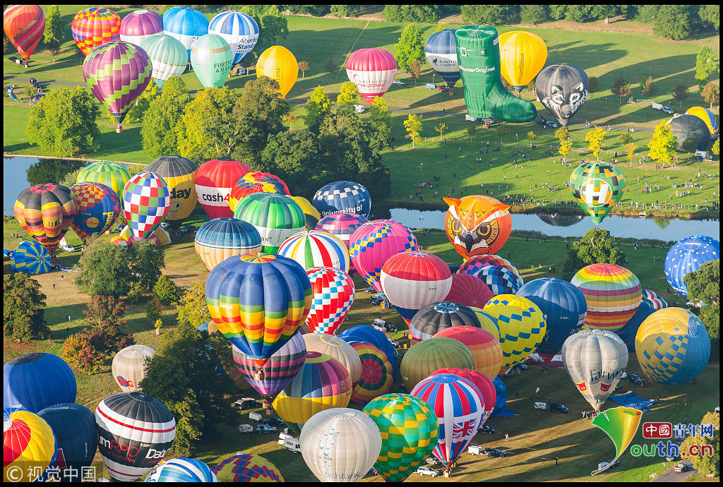 英國(guó)170多只熱氣球齊飛創(chuàng)紀(jì)錄 如田園夢(mèng)幻世界