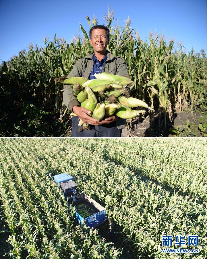 這張拼版照片顯示的是:上圖,9月18日,黑龍江省綏化市青岡縣禎祥鎮(zhèn)莊稼屯村民莊秀彬捧著剛收獲的玉米;下圖,9月18日,莊秀彬駕駛農機收獲玉米(無人機拍攝)。 新華社記者王凱攝