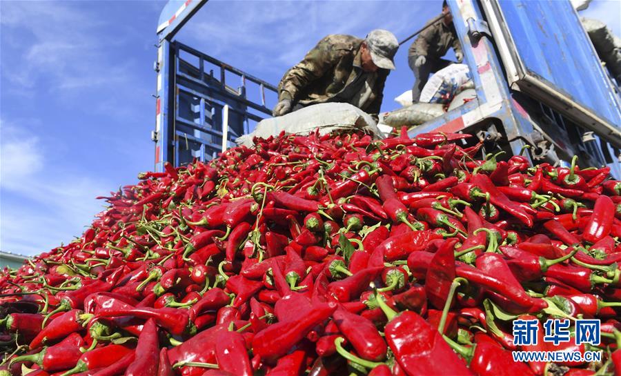 9月16日,阜城縣王集鄉(xiāng)南張莊村農(nóng)民在搬運采摘的辣椒。近年來,河北省阜城縣王集鄉(xiāng)在推進產(chǎn)業(yè)富民過程中,積極引導農(nóng)民調(diào)整農(nóng)業(yè)產(chǎn)業(yè)結構,按照品種特色化、種植規(guī)模化、產(chǎn)銷一體化的“公司+基地+農(nóng)戶”的經(jīng)營模式,鼓勵農(nóng)民發(fā)展特色辣椒種植,推行“訂單種植”模式,開辟出了一條農(nóng)民創(chuàng)收新路徑。目前,阜城縣王集鄉(xiāng)辣椒種植面積3100余畝,每畝年收益2500元以上,帶動當?shù)剞r(nóng)民實現(xiàn)增收。新華社記者朱旭東攝