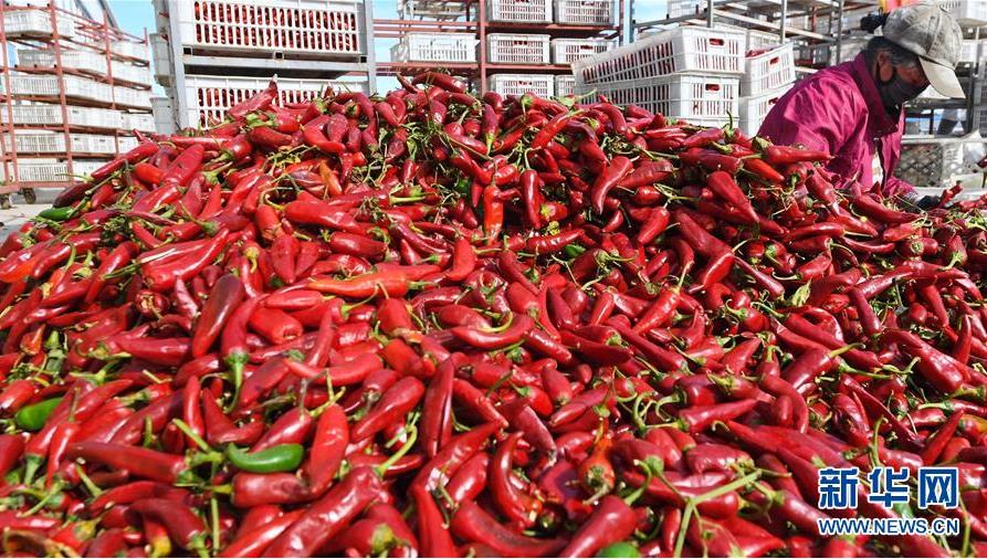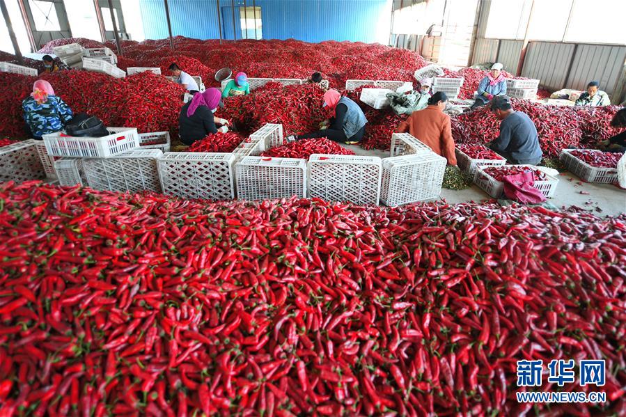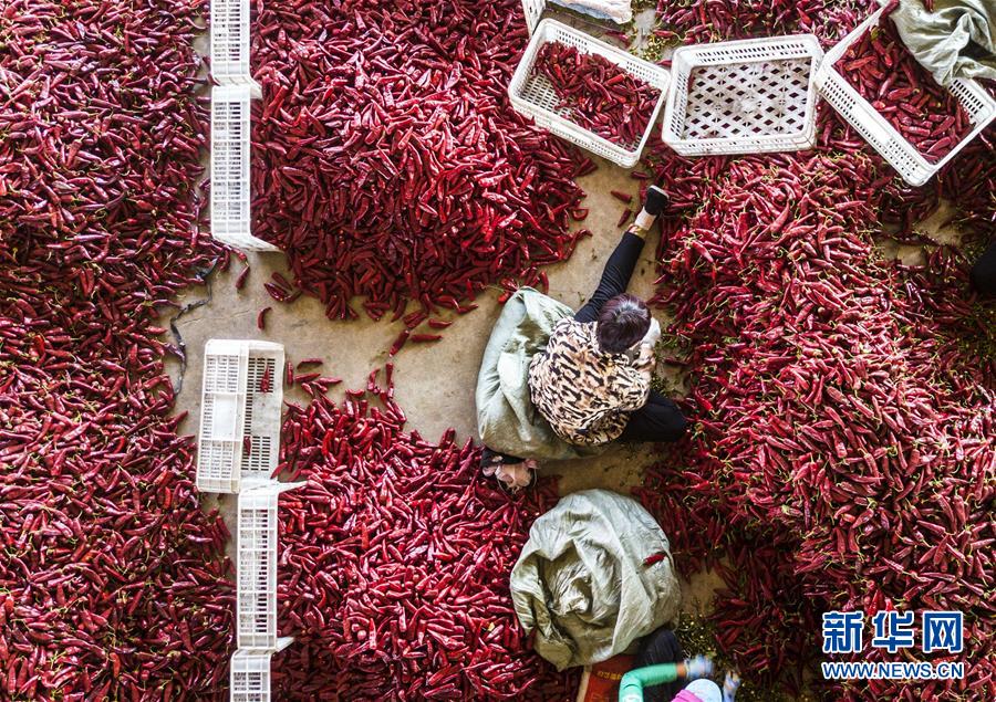 9月16日,阜城縣王集鄉(xiāng)南張莊村農(nóng)民在整理收獲的辣椒。近年來,河北省阜城縣王集鄉(xiāng)在推進產(chǎn)業(yè)富民過程中,積極引導農(nóng)民調(diào)整農(nóng)業(yè)產(chǎn)業(yè)結構,按照品種特色化、種植規(guī)?;?、產(chǎn)銷一體化的“公司+基地+農(nóng)戶”的經(jīng)營模式,鼓勵農(nóng)民發(fā)展特色辣椒種植,推行“訂單種植”模式,開辟出了一條農(nóng)民創(chuàng)收新路徑。目前,阜城縣王集鄉(xiāng)辣椒種植面積3100余畝,每畝年收益2500元以上,帶動當?shù)剞r(nóng)民實現(xiàn)增收。新華社記者朱旭東攝