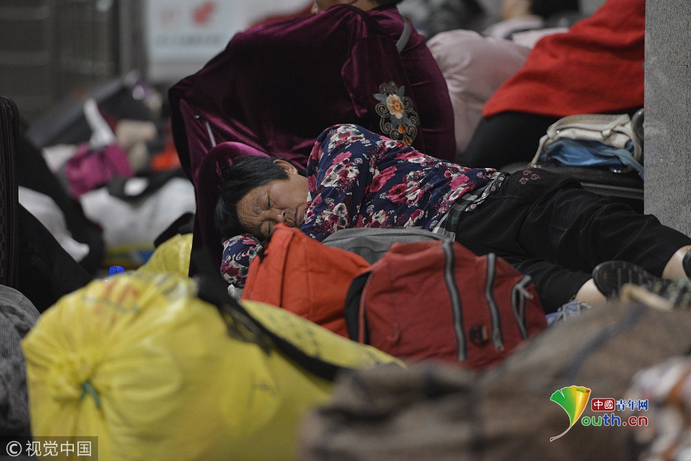 2018年9月15日,在鄭州火車站候車大廳,來自周口西華縣農村的數百名采棉工,為趕早上4點50分的火車,在火車室打地鋪休息。