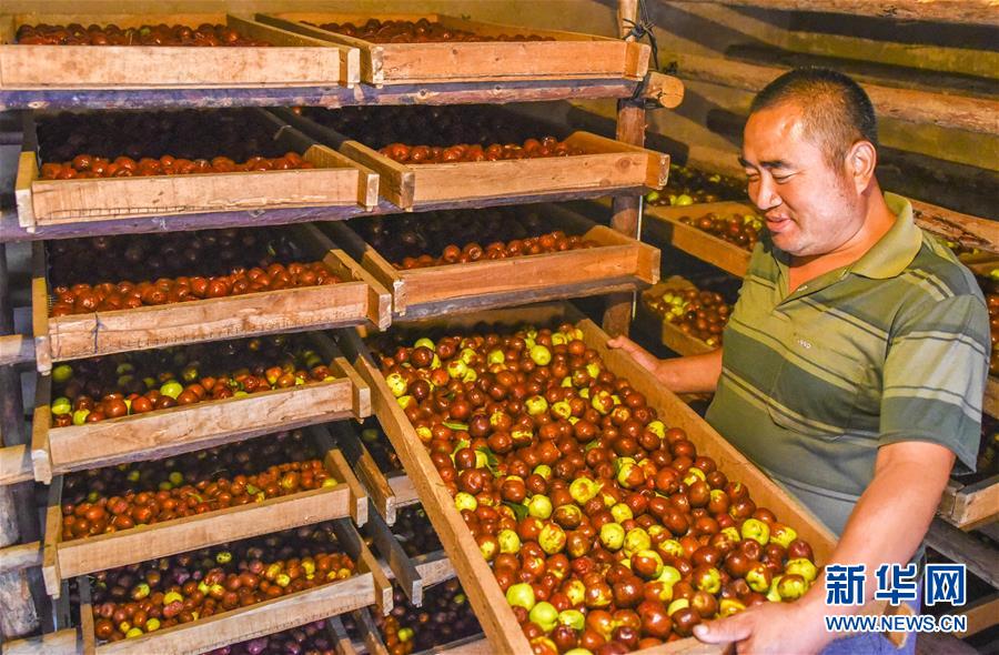9月22日,河北省棗強(qiáng)縣棗強(qiáng)鎮(zhèn)孟家莊村的棗農(nóng)將紅棗放進(jìn)蒸房。 近日,河北省棗強(qiáng)縣的2000多畝棗園迎來(lái)收獲季,棗農(nóng)們搶抓農(nóng)時(shí),采摘、篩選、晾曬紅棗,樂(lè)享秋收的快樂(lè)。 新華社記者李曉果攝
