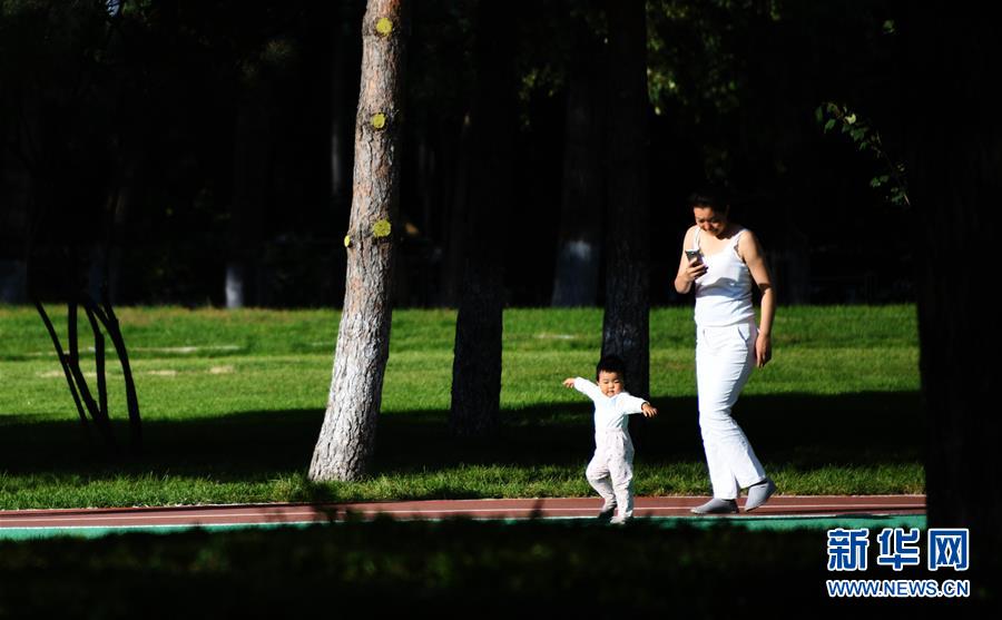 9月25日,一名家長帶著孩子在湘江公園內(nèi)游玩。 當(dāng)日,哈爾濱市湘江公園正式開園迎客。這個集休閑、健身、娛樂、觀賞于一體的多功能都市公園由高爾夫球場改造而成,免費對市民和游客開放。 新華社記者 王建威 攝