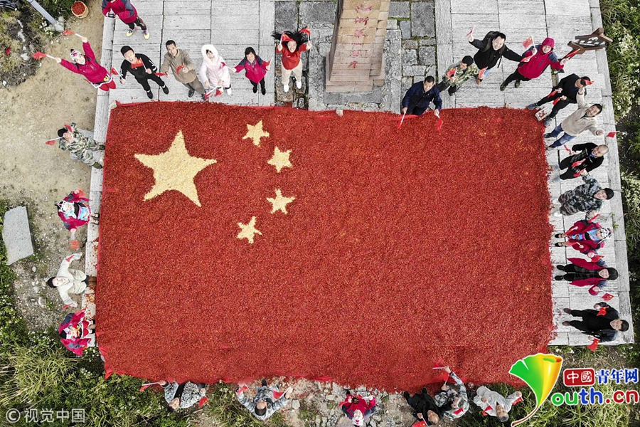 浙江龍泉山喜獲豐收 8噸辣椒拼巨型國旗