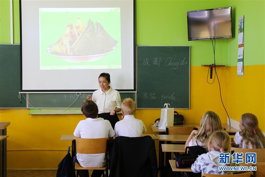 9月25日,在波蘭羅茲第一小學,成都青白江區(qū)外國語小學老師李艷向波蘭小學生介紹中國美食。成都青白江區(qū)外國語小學與波蘭羅茲第一小學25日在波蘭中部城市羅茲簽署友好學校合作協(xié)議。這是繼成都與羅茲2015年結為友城之后,兩座城市人文交流合作的又一新成果。2013年,東起成都青白江、西至羅茲的中歐班列(蓉歐快鐵)開通。5年來,來往兩地的班列不斷增加,有力促進了成都與羅茲在經(jīng)貿(mào)、教育、文化等多領域的交流與合作。新華社記者 陳序 攝