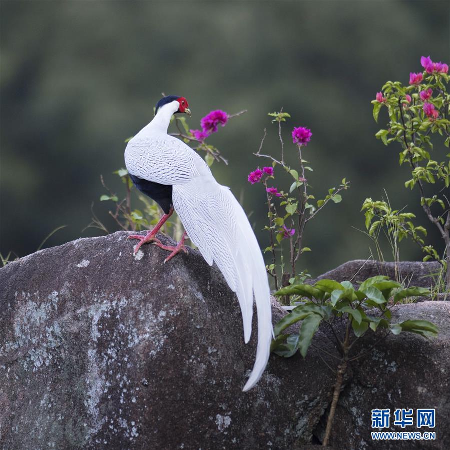 9月27日,在南靖縣鵝仙洞自然保護(hù)區(qū)內(nèi),一只白鷴在山石上停留。 新華社記者 梅永存 攝