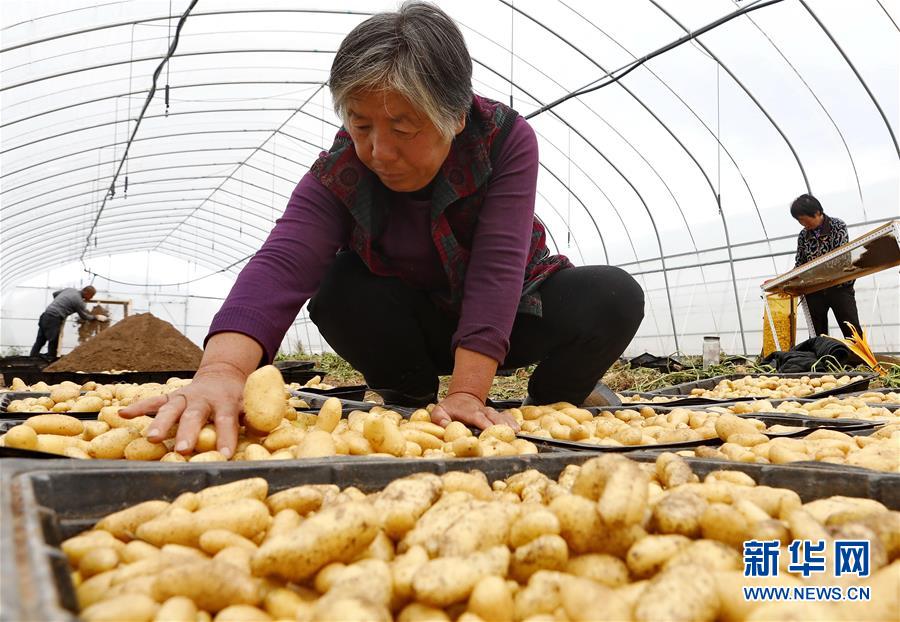 9月23日,張北縣小二臺鎮(zhèn)一家馬鈴薯育種中心的工人在大棚內整理剛收獲的脫毒微型薯。 近年來,地處壩上地區(qū)的河北省張北縣因地制宜,積極推進馬鈴薯產(chǎn)業(yè)化發(fā)展,形成了馬鈴薯繁種育種、商品薯種植、倉儲、加工為一體的產(chǎn)業(yè)鏈,帶動農民增收致富。 新華社記者楊世堯攝