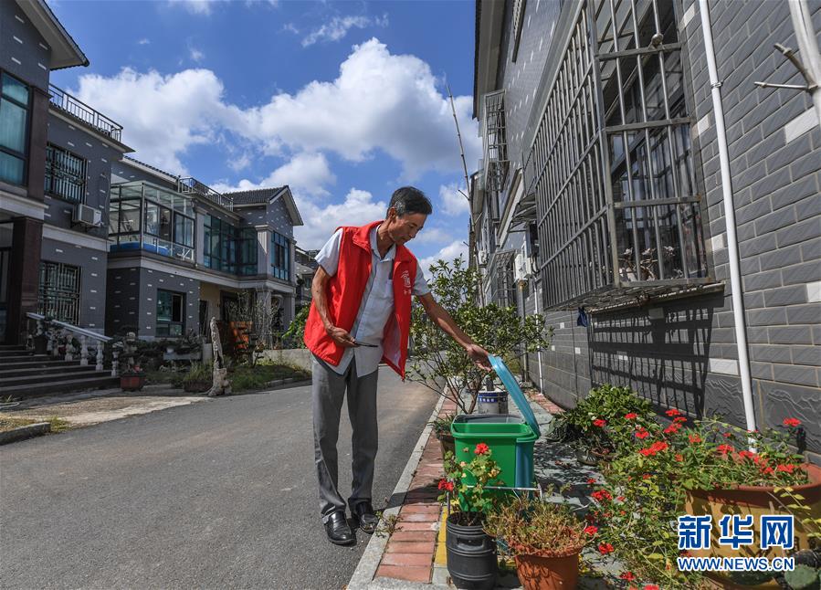 9月27日,小浦鎮(zhèn)合溪村垃圾分類督察員黃秋華在進(jìn)行垃圾分類巡查,并用APP進(jìn)行登記。從9月初開始,浙江省長興縣小浦鎮(zhèn)推廣使用手機(jī)垃圾分類智能管理平臺。通過這款A(yù)PP可以進(jìn)行村民垃圾分類情況打分、清運(yùn)員每日簽到、監(jiān)督員巡查等,并能即時(shí)生成農(nóng)戶垃圾分類“成績單”,所有農(nóng)戶均可通過APP查詢垃圾分類排行榜,既方便又環(huán)保。新華社記者 徐昱 攝