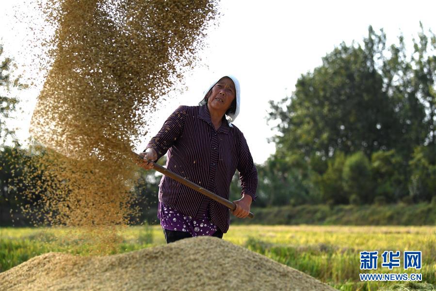 正值秋收時(shí)節(jié),安徽省鳳陽縣小崗村水稻陸續(xù)成熟,進(jìn)入收割期。當(dāng)?shù)剞r(nóng)民利用晴好天氣搶收水稻,確保顆粒歸倉(cāng)。