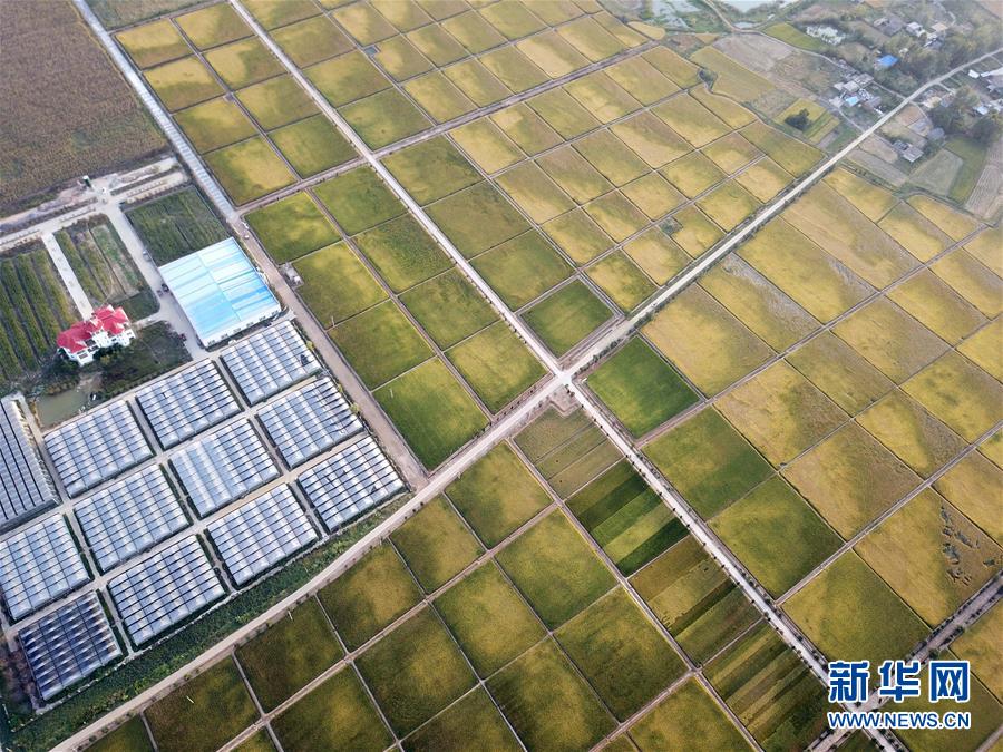 這是北大荒集團(tuán)在小崗村建立的現(xiàn)代化水稻生產(chǎn)基地(9月27日無(wú)人機(jī)拍攝)。 新華社記者 張端攝