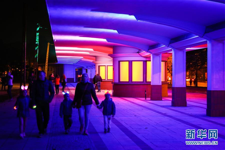 這是9月28日在波蘭羅茲市中心拍攝的2018“舞動”燈光節(jié)現(xiàn)場。2018“舞動”燈光節(jié)于9月28日至30日在波蘭中部交通樞紐城市——羅茲市舉行,各式各樣的光影表演在這座城市的各個角落同時上演,組成了一場如夢如幻的大型燈光秀。新華社記者陳序攝