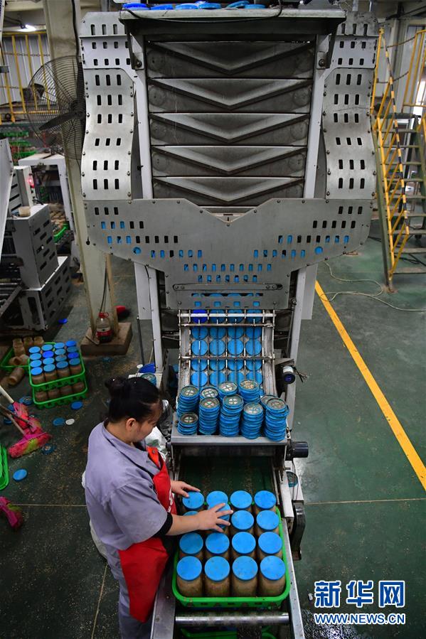 在位于清豐縣的河南龍豐實(shí)業(yè)股份有限公司,一名工人在裝瓶車(chē)間查看食用菌栽培瓶裝瓶情況(9月28日攝)。新華社記者馮大鵬攝