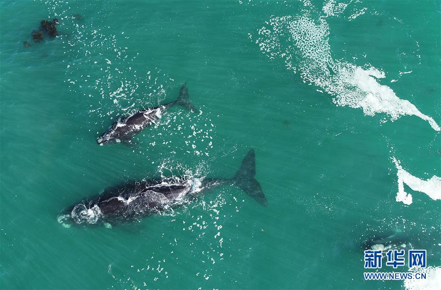 9月30日,在南非赫曼紐斯小鎮(zhèn)附近海面上,南露脊鯨在海岸邊暢游。9月29日,位于開普敦以東約115公里的赫曼紐斯小鎮(zhèn)迎來2018年的鯨魚節(jié),來自世界各地的游客可乘船出海觀鯨,也可在岸邊等待鯨魚的到來。新華社記者陳誠攝
