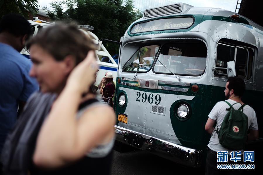 當日,由紐約交通博物館主辦的第25屆紐約巴士節(jié)在布魯克林舉行,十余輛巴士敞開車門,向民眾展示了紐約地面公共交通工具80多年來的變遷。