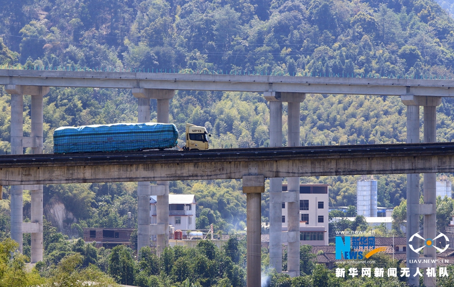 改擴建工程最大限度減低了路面坡度。這兩處高架橋在廈蓉高速南靖縣和溪路段,前為一部貨車在長下坡路段爬坡,后為新建的路段。新華網(wǎng) 肖和勇 攝