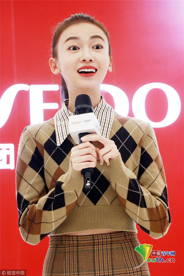 2018年10月8日,上海,吳謹言出席某活動。她穿學(xué)院風(fēng)套裝,高梳馬尾嫩似小學(xué)妹,熱聊粉絲甜笑比心少女范十足 。