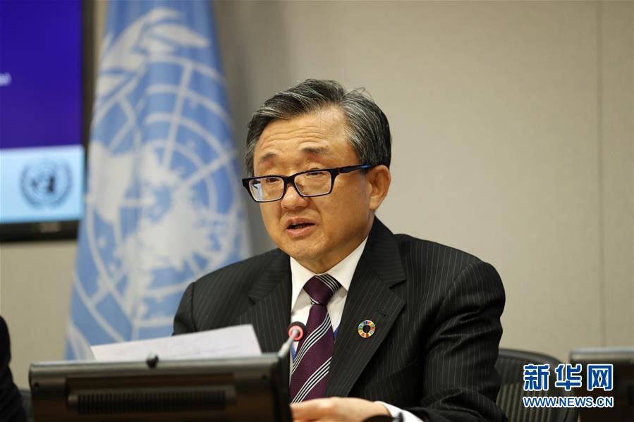 10月8日,在位于紐約的聯(lián)合國總部,聯(lián)合國負(fù)責(zé)經(jīng)濟(jì)和社會事務(wù)的副秘書長劉振民向記者介紹《2018年世界經(jīng)濟(jì)和社會概覽》。新華社記者李木子攝
