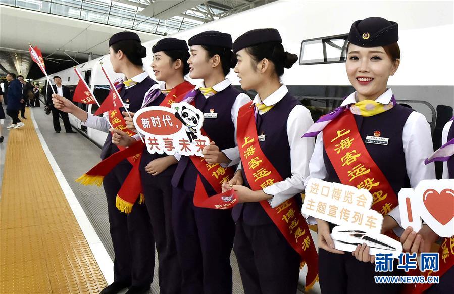 當(dāng)日,首列復(fù)興號(hào)“進(jìn)口博覽會(huì)主題宣傳列車”從上海虹橋站發(fā)車。這輛滿載著此次盛會(huì)“知識(shí)點(diǎn)”和“信息量”的高鐵列車,將在京滬高鐵線上運(yùn)行,成為進(jìn)口博覽會(huì)的“流動(dòng)宣傳窗”。