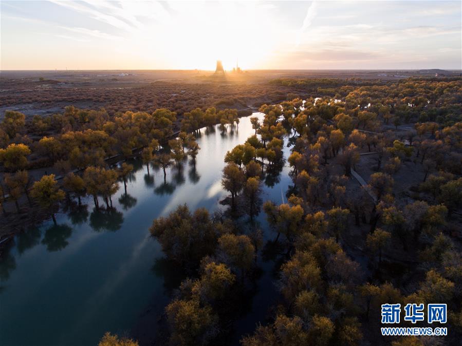 這是在內(nèi)蒙古自治區(qū)額濟(jì)納旗拍攝的胡楊林(10月10日無人機(jī)拍攝)。 金秋時(shí)節(jié),內(nèi)蒙古自治區(qū)額濟(jì)納旗胡楊林如同披上金裝,成為大漠中的一抹亮色,吸引眾多中外游客前來觀賞游玩。 新華社記者劉磊攝
