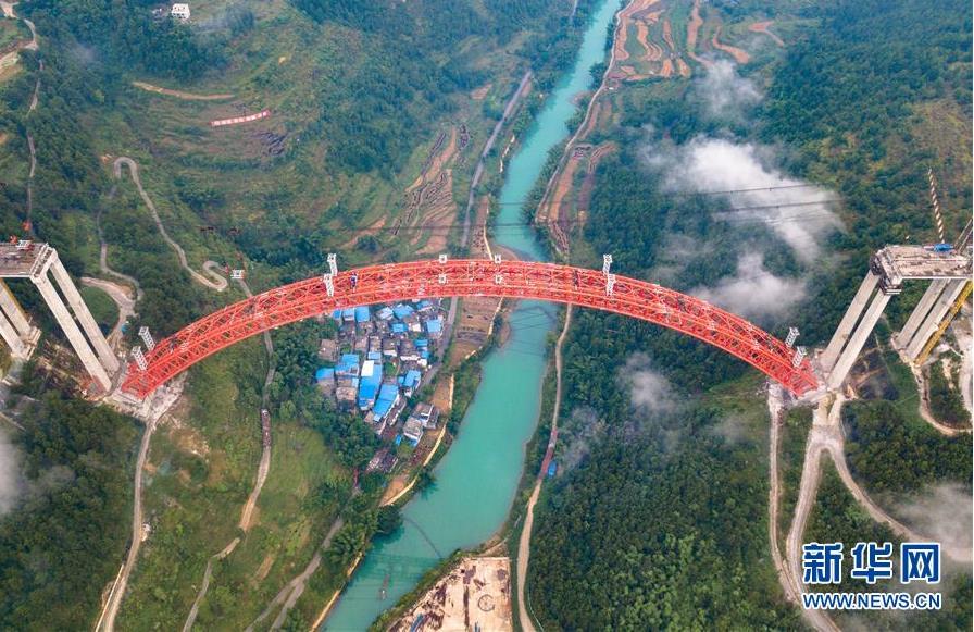 9月28日拍攝的川藏鐵路拉林段重點(diǎn)標(biāo)志性工程藏木特大橋。 當(dāng)日,隨著最后一節(jié)鋼管拱的對(duì)位和鎖定完畢,川藏鐵路拉林段藏木特大橋成功合龍,標(biāo)志著大橋主體結(jié)構(gòu)施工取得了關(guān)鍵性勝利。藏木特大橋由中國(guó)中鐵廣州局集團(tuán)承建,拱高112米,橋橫跨雅魯藏布江峽谷,水深66米。 新華社記者普布扎西攝