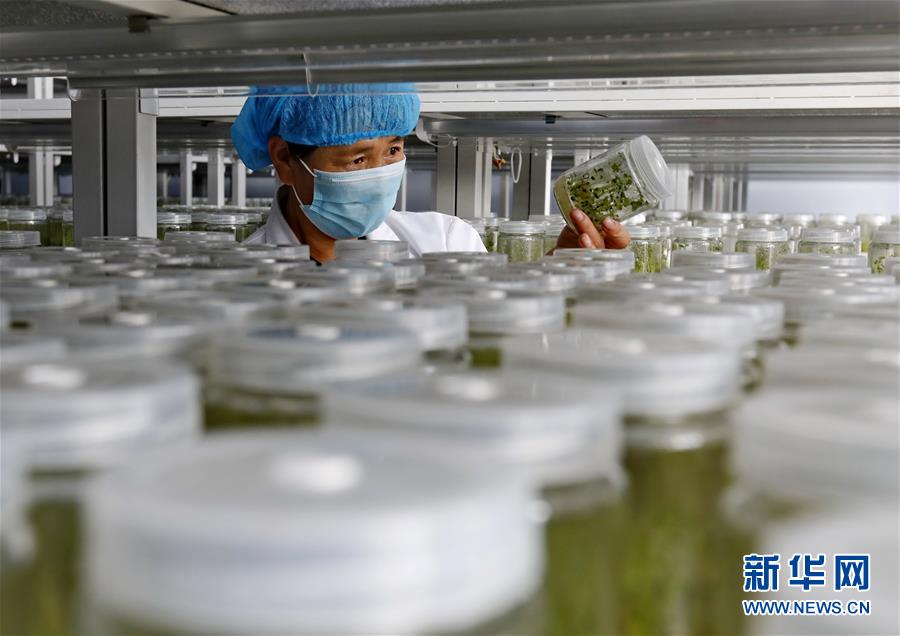 9月23日,張北縣小二臺(tái)鎮(zhèn)一家馬鈴薯育種中心的技術(shù)員在培育室查看薯苗長勢(shì)。 近年來,地處壩上地區(qū)的河北省張北縣因地制宜,積極推進(jìn)馬鈴薯產(chǎn)業(yè)化發(fā)展,形成了馬鈴薯繁種育種、商品薯種植、倉儲(chǔ)、加工為一體的產(chǎn)業(yè)鏈,帶動(dòng)農(nóng)民增收致富。 新華社記者楊世堯攝