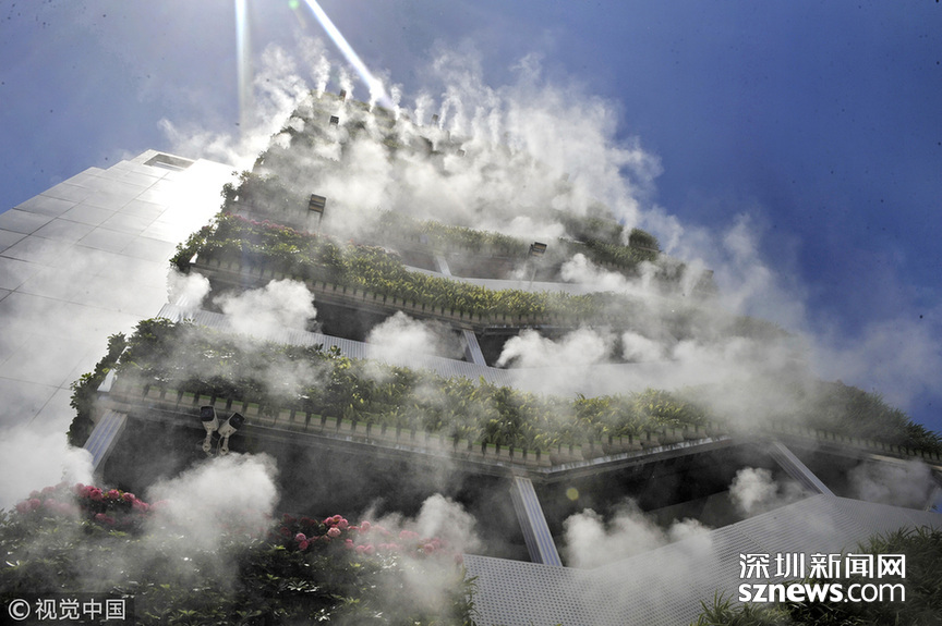 相關(guān)鏈接 10層高樓長滿綠植“仙氣飄飄” 這座建筑在抖音火了! 深圳新聞網(wǎng)訊 2018年6月10日,西安,高樓外長滿綠植,還縈繞著霧氣。這段只有6秒的短視頻在抖音火了,網(wǎng)友評論這是“第四代住房”,其實這是西安市眾創(chuàng)示范街區(qū)的一處安裝了智能霧森系統(tǒng)的西北最大戶外垂直綠化。 夏天能區(qū)域降溫5℃至10℃ 還可有效抑制PM10 “仙氣飄飄”、“西安天氣有多熱,房子都冒煙了”,這是一段抖音小視頻里網(wǎng)友的評論留言。視頻中一棟10層高的樓外側(cè)樓梯處掛滿了綠植,同時綠植上方還有噴霧。藍藍的天空當(dāng)做背景,引來不少人上前拍照,配著背景音樂的確讓人感覺清涼無比。