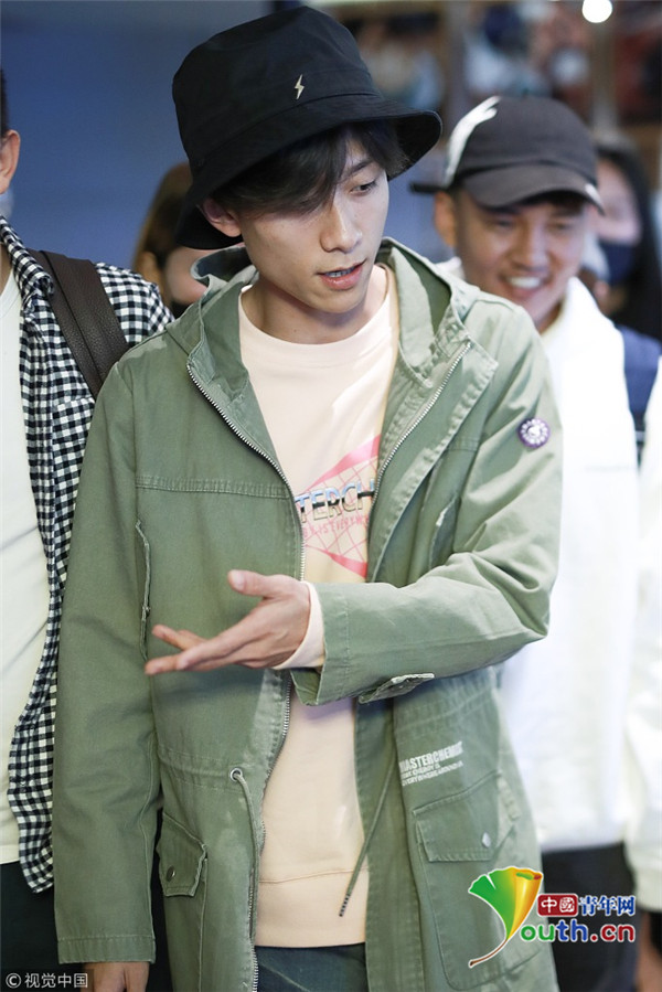 2018年10月14日,上海,張一山抵達(dá)上海機(jī)場。張一山戴漁夫帽眼袋嚴(yán)重瞬間老十歲, 用手擋臉?biāo)撇辉干乡R。