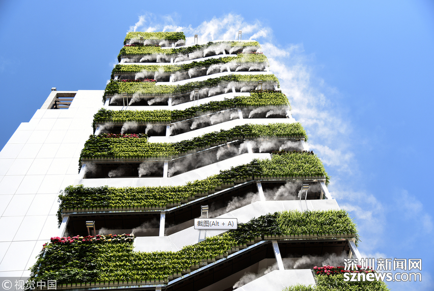 相關(guān)鏈接 10層高樓長滿綠植“仙氣飄飄” 這座建筑在抖音火了! 深圳新聞網(wǎng)訊 2018年6月10日,西安,高樓外長滿綠植,還縈繞著霧氣。這段只有6秒的短視頻在抖音火了,網(wǎng)友評論這是“第四代住房”,其實這是西安市眾創(chuàng)示范街區(qū)的一處安裝了智能霧森系統(tǒng)的西北最大戶外垂直綠化。 夏天能區(qū)域降溫5℃至10℃ 還可有效抑制PM10 “仙氣飄飄”、“西安天氣有多熱,房子都冒煙了”,這是一段抖音小視頻里網(wǎng)友的評論留言。視頻中一棟10層高的樓外側(cè)樓梯處掛滿了綠植,同時綠植上方還有噴霧。藍藍的天空當做背景,引來不少人上前拍照,配著背景音樂的確讓人感覺清涼無比。