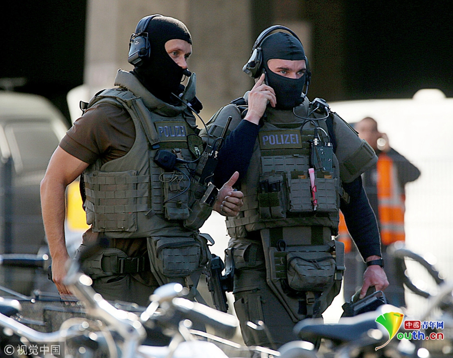 當(dāng)?shù)貢r(shí)間8月15日,德國(guó)科隆火車(chē)總站發(fā)生了人質(zhì)劫持事件,當(dāng)?shù)孛襟w稱,現(xiàn)場(chǎng)有大量裝備有沖鋒槍的警察??坡【椒Q,目前該火車(chē)站的部分區(qū)域已被關(guān)閉。有媒體稱,在該事件中,傳出了槍聲,槍擊事件或還造成一人受傷。來(lái)源:視覺(jué)中國(guó)