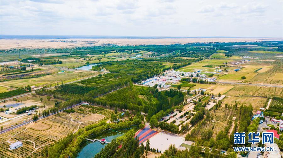 內(nèi)蒙古鄂爾多斯市恩格貝生態(tài)旅游區(qū)(6月8日無人機拍攝)。 新華社記者彭源攝