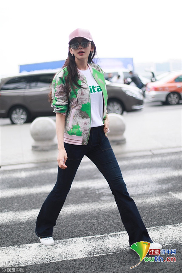 2018年10月16日,上海,林志玲亮相機(jī)場(chǎng),她身穿綠色印花外套搭配粉色鴨舌帽十分清新靚麗,乖乖坐小車(chē)抿嘴甜笑比V嘟嘴頻賣(mài)萌。