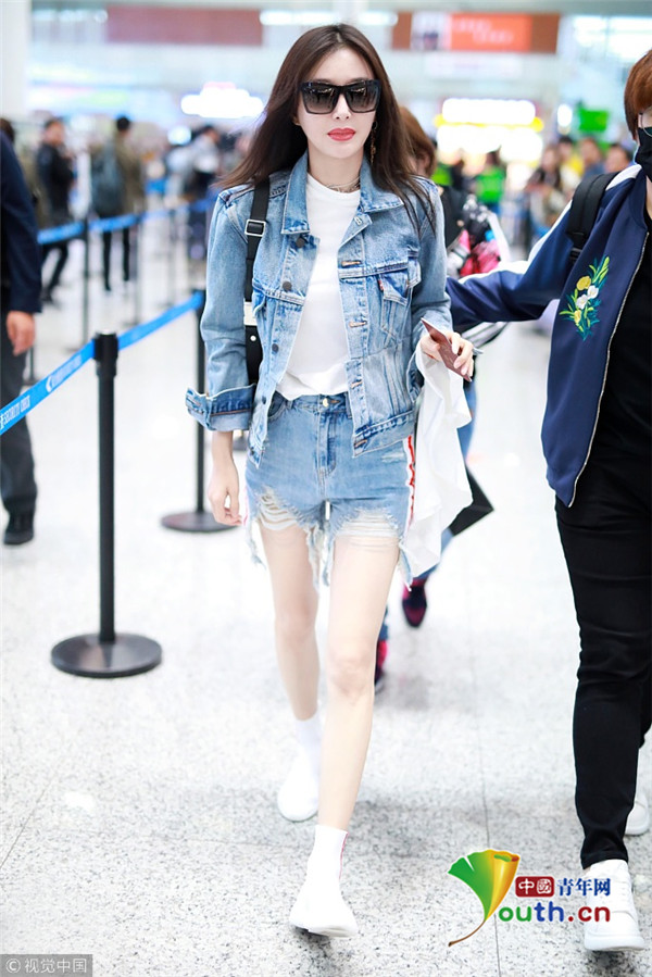 2018年10月17日,上海,秦嵐現(xiàn)身機(jī)場(chǎng)。她一身牛仔LOOK露出白皙長(zhǎng)腿,雪膚紅唇美得不可方物,長(zhǎng)發(fā)飄飄玉手撩發(fā)女神范十足。