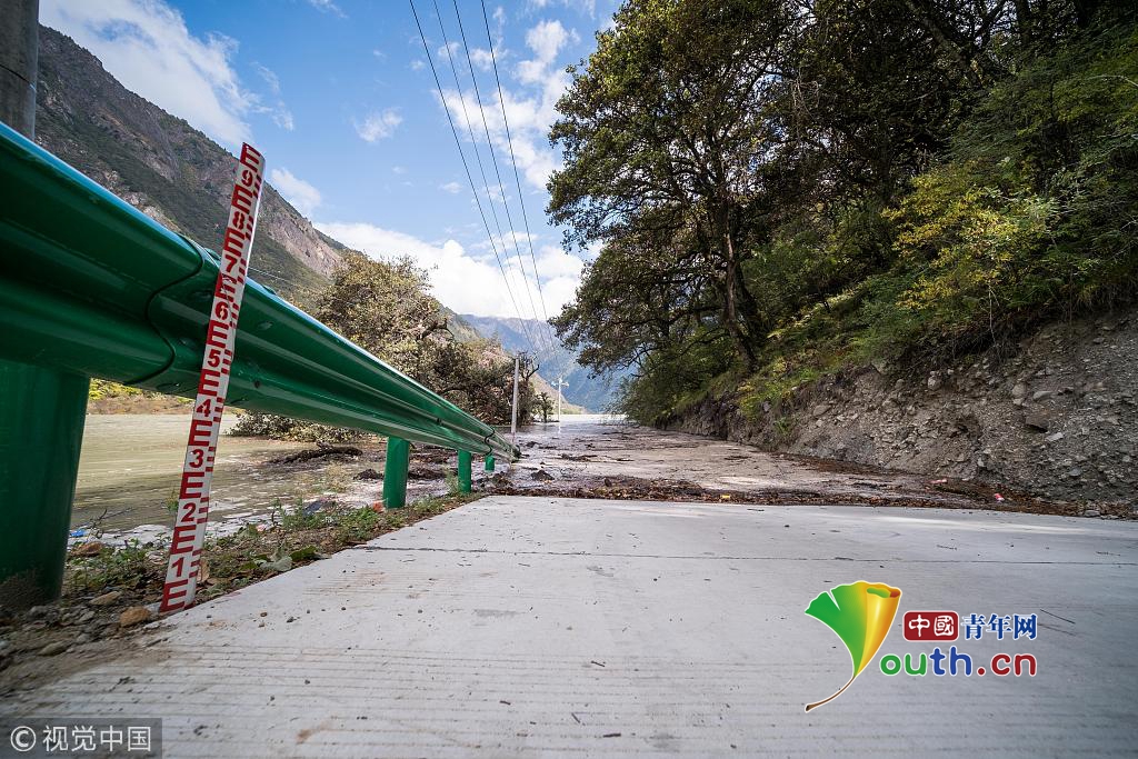 2018年10月18日,通往西藏林芝米林縣加拉村的道路被堰塞湖水淹沒(méi)。
